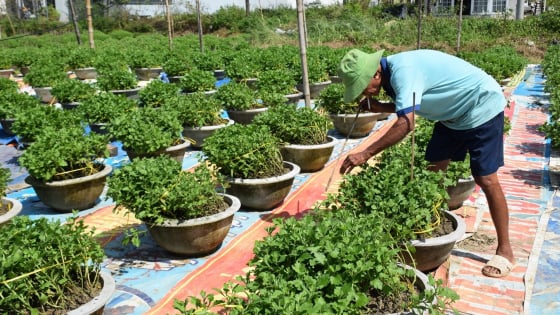 Cây cúc bao giờ cũng thừa nhánh rất nhiều, nếu cắt bỏ những nhánh bị bão làm tét cũng không sợ chậu cúc bị trống cây. Giờ chỉ tốn công sửa sang chứ không sợ cây cúc bị chết. Nhìn đám cúc lá còn xanh là mừng. Trồng cúc bán Tết sợ nhất là lụt, cây cúc ngâm nước nhiều ngày sẽ bị cháy lá, chậu cúc bị trống lá chân bán không ai mua”, anh Dân lạc quan.