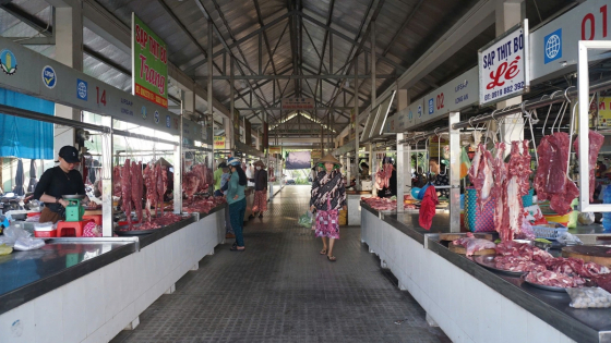Các quầy thịt heo tại Tây Ninh vắng khách. Ảnh: Trần Trung.