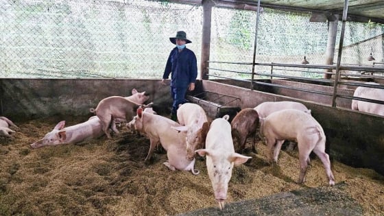 Mô hình chăn nuôi lợn hữu cơ, an toàn sinh học 4F ở TP. Huế đang mang lại nhiều hiệu quả cho nông dân. Ảnh: Văn Dinh.