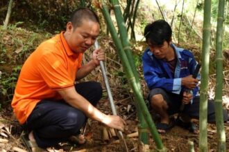 “Ông đã trồng cau mấy chục năm nay ở Đài Loan, diện tích vườn bên đó cụ thể bao nhiêu em không biết mà chỉ biết là rất rộng. Năm 2016 ông thuê đất ở đây nhưng không trồng được ngay mà phải đặt quả cau giống chuyển về Đan Phượng quê vợ để ươm, lúc cây cao được khoảng 1m mới đem lên. Hiện em đã trồng được khoảng gần 4ha và vẫn đang cho ươm 2 vạn cây con để cuối năm trời mát tiếp tục mở rộng diện tích”, anh Hưởng nói tiếp.