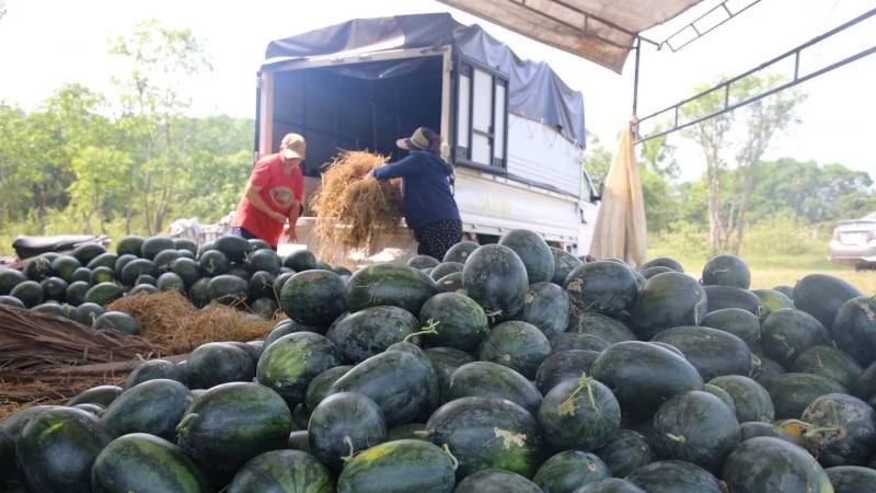 Theo tính toán của nông dân, chi phí thuê đất, giống, phân bón, thuốc bảo vệ thực vật, nước tưới… để trồng dưa hấu đã hơn 100 triệu đồng/ha, chưa tính công lao động. Sau hai tháng chăm sóc, năng suất đạt khoảng 20 tấn/ha. Với giá bán hiện tại, nông dân chỉ thu về gần 60 triệu đồng/ha, lỗ ít nhất khoảng 40 triệu đồng.